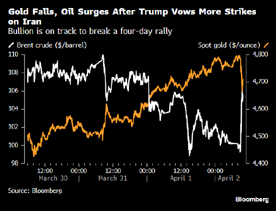 特朗普的讲话“基本上将这场冲突描述为一场军事胜利,而不是一项停火声明”,华侨银行策略师Christopher Wong表示。“黄金盘中一度升向每盎司4800美元。但从现在起,鉴于市场担忧美国可能在伊朗采取地面军事行动,风险偏好可能因此受到抑制,黄金的涨势或许会放缓。”
